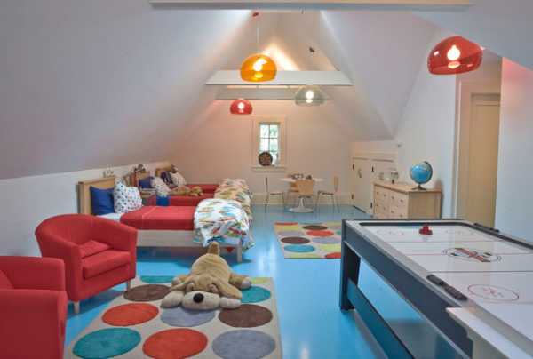 Игровая комната на мансарде, как задействовать сложные формы под скатами