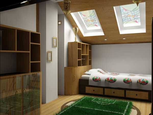 Детская в мансарде, фото помещения, оформленного в спортивном стиле. Подойдет для подростка