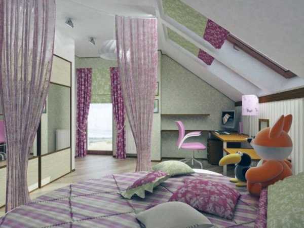 Детская на мансарде дизайн, фото правильного зонирования пространств