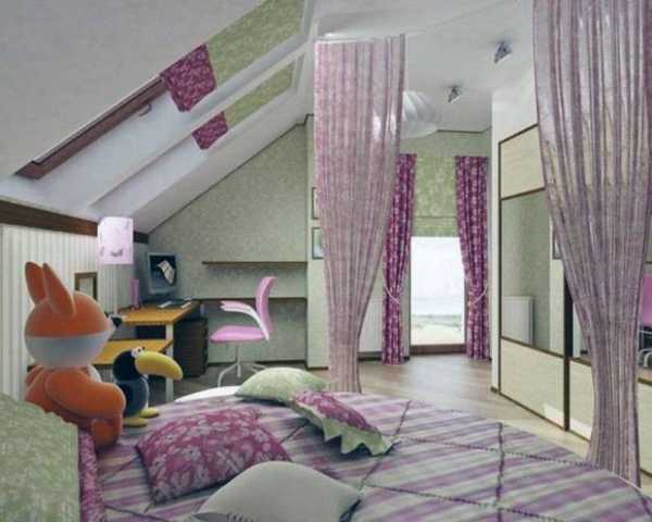 Детская на мансардном этаже, фото комнаты для девочки-подростка
