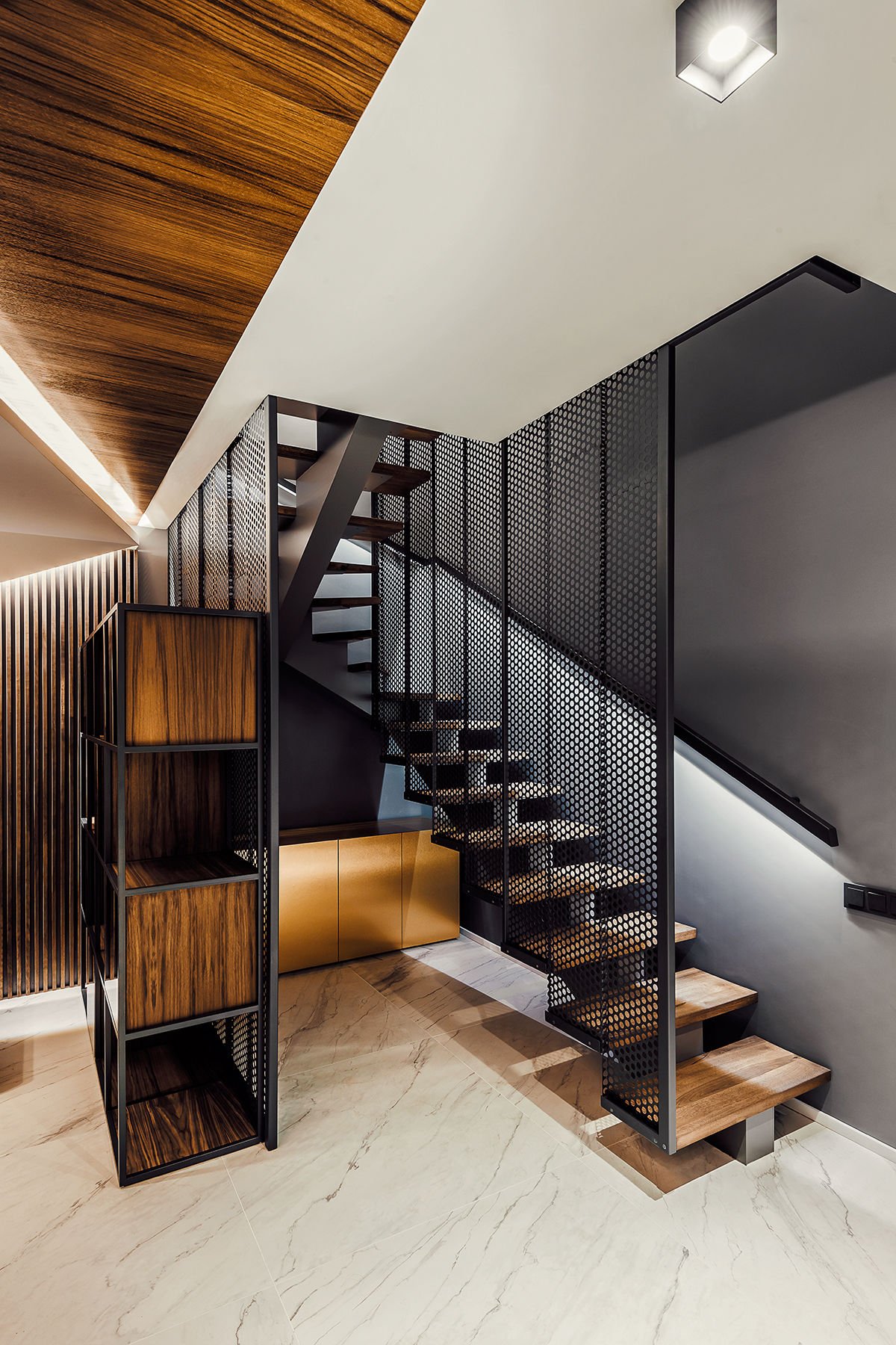 Один из лучших дизайн-проектов Axis Mundi — это квартира, в которой комнаты на двух этажах соединены внутренней лестницей.