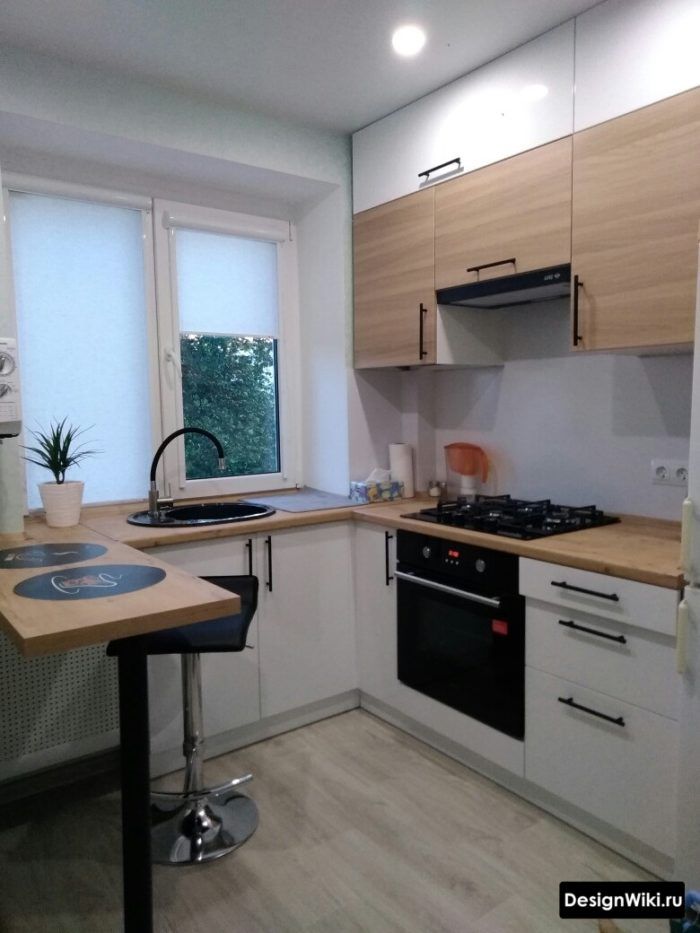 На кухне без обеденного стола не обойтись, однако на маленькой кухне, 7 кв. м, стол часто заменяют барной стойкой: современные стеллажи могут иметь необычный дизайн и совершенно уникальный дизайн , они идеально вписываются в интерьер. Кроме того, барная стойка значительно сэкономит место на кухне.