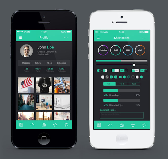 На все приложение желательно использовать не более 5 – 6 типов одного шрифта (разного размера, цветов и толщины) и 4 – 5 цветов. Этого достаточно для расставления акцентов и создания аккуратного интерфейса. Также стоит продумать анимацию перехода с одного экрана на другой: исчезновение, смещение, прелоадер и др. При подборе цветов также стоит учитывать, что цветовая палитра Iphone, как правило, лучше, чем палитра Android-устройств, а значит нужно отказаться от грязных и смежных цветов.