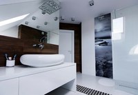 Мансардное окно VELUX над душем создает ощущение купания на открытом воздухе в комфортной домашней обстановке.