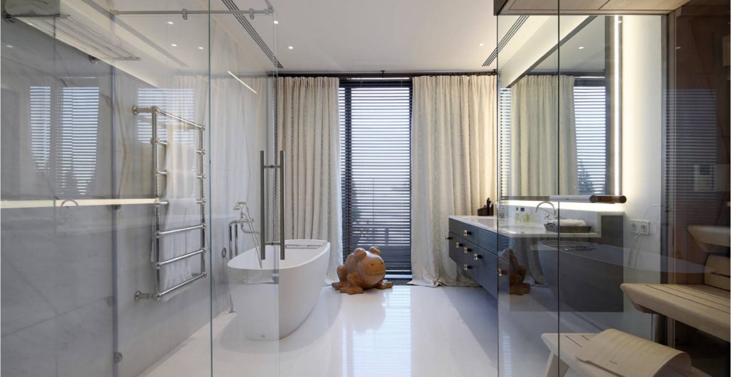 Поутихла шумиха вокруг навороченных гидромассажных систем, тропических душей, каскадных и прозрачных смесителей. Оказалось, включать все форсунки каждый день банально лень, стоять под потоком воды из широкого душа комфортно далеко не каждому, а восторг от пузырьков в прозрачном смесителе утихает уже через несколько недель. Поэтому будет оптимальным спроектировать пространство строго под потребности каждого, кто будет им пользоваться.