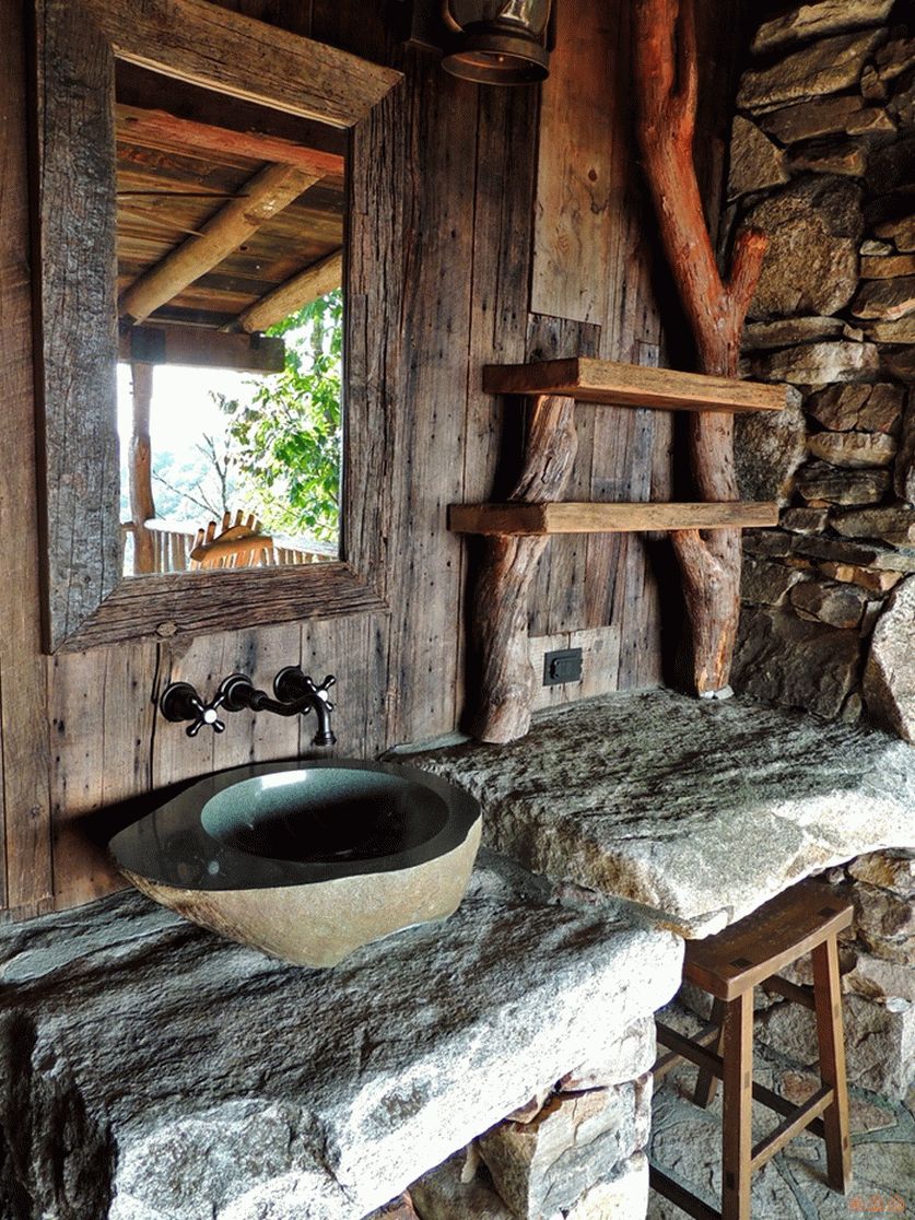 Также, к дереву можно добавить дикий камень или просто сделать весь интерьер в диком стиле.