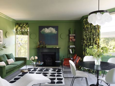 Яркий изумрудно-зеленый цвет — идеальный цвет для комнаты, которая требует обновления на новый уровень. Выберите ярко-зеленую краску для максимального эффекта или используйте обои для более мягкого вида, который больше подходит для более традиционных идей гостиной.