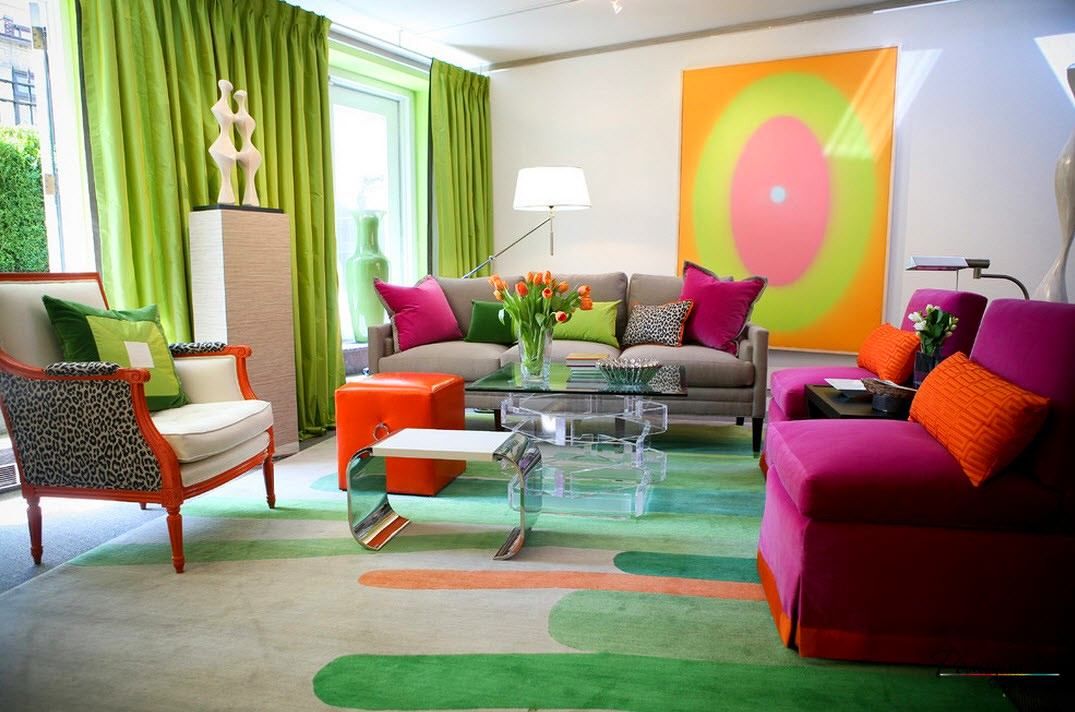 Многие бояться светлой маркой мебели, но хотят яркую гостиную.