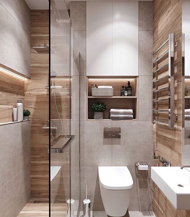 Дизайн ванной комнаты и туалета в бежево-коричневых тонах всегда популярен