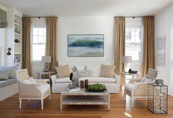 - Бежевый и все его оттенки как всегда популярны для оформления гостиной комнаты;