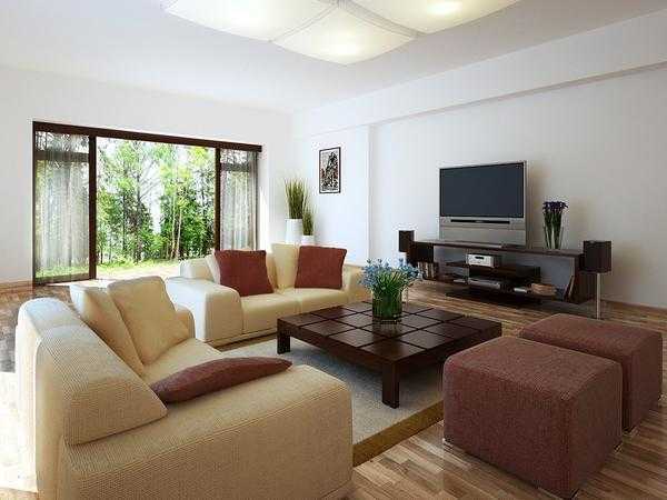 Даже лучше, если например мебель будет изготовлена из дорогих природных материалов, это добавит гостиной уюта и тепла и сгладит «холодное» впечатление от преобладающего пустого пространства. Минималистичная гостиная должна быть очень хорошо освещена, чем больше света, тем лучше.