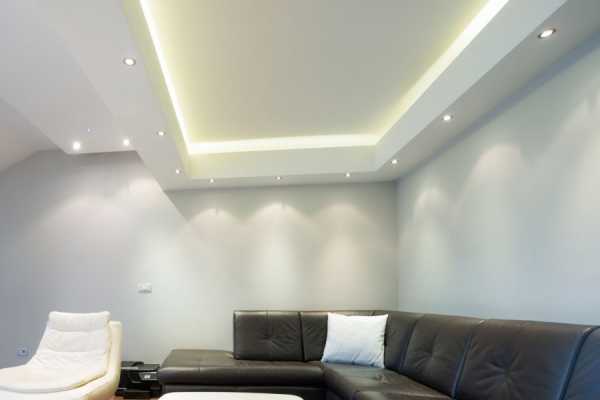 Не забудьте определиться заранее, насколько создаваемый потолок будет находиться ниже основного. Это расстояние не может быть менее 10 сантиметров, так как именно такое пространство необходимо для монтажа стандартного встраиваемого источника света.