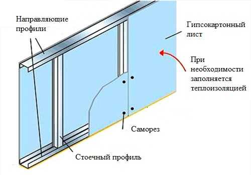 После того как каркас будет собран и надежно зафиксирован, можно начинать монтаж гипсокартона. Данная процедура довольна проста: