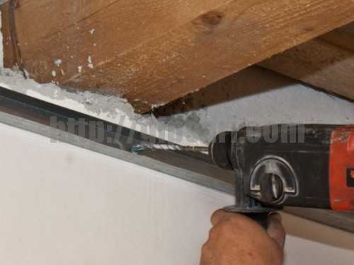 После происходит сверление дыр в стенах для дюбелей, с рекомендуемым шагом в 30-40 см. Происходит прикручивание направляющих профилей.