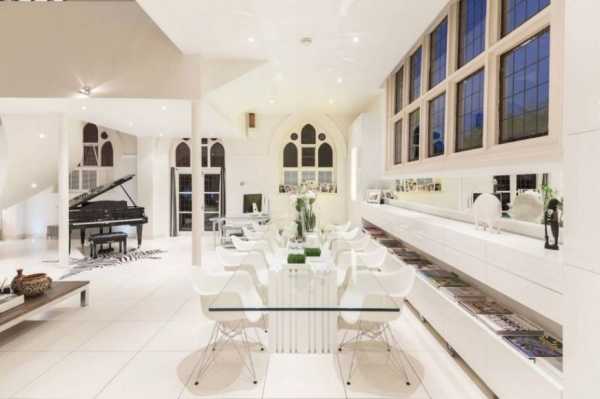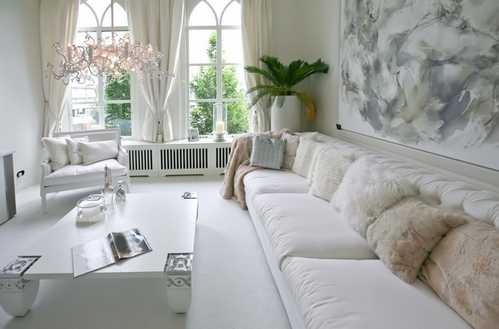 - Дорогая мягкая мебель с обивкой из белой кожи.
