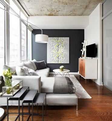 Дизайн узкой гостиной в стиле лофт