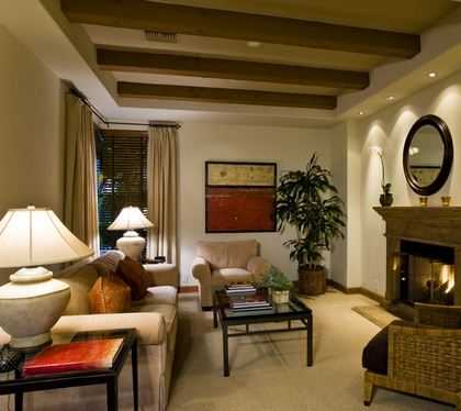 Для живописности гостиной полезно использовать контрасты в ее дизайне. К примеру, выделить более темным оттенком стенные ниши в помещении со светлыми стенными поверхностями.