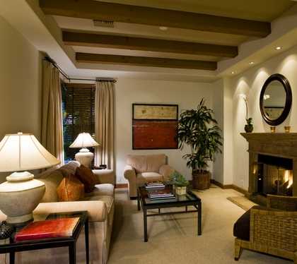 4. При выборе цветовой гаммы учитывайте расположение вашей гостиной относительно сторон света. Если окна выходят на юг, можно выбирать более прохладные оттенки синего, коричневого, фиолетового, серого и белого цветов. Для гостиных, окна которых выходят на северную сторону, выбирайте теплые желтые, оранжевые, зеленые тона.