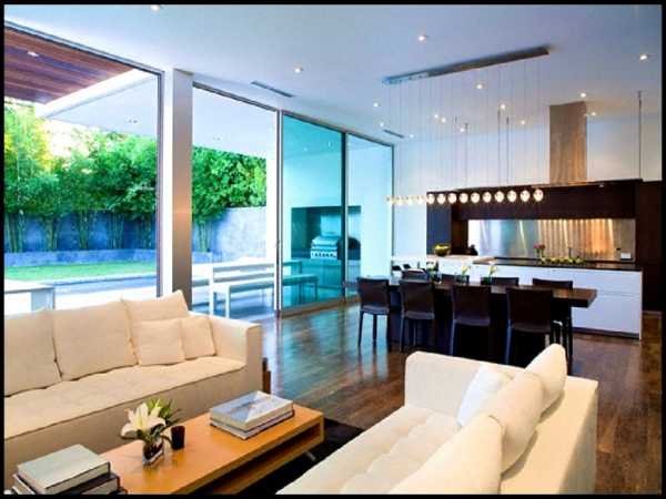 Соединение комнаты для приема гостей и кухни дает возможность создать единое пространство, соединяя два, кажется, несовместимых помещения. Дизайн гостиной с прямыми углами в этом случае обязан базироваться на гармоничном группировке 2-ух разнофункциональных пространств. В первую очередь, нужно побеспокоится о зрительном зонировании 2-ух частей жилого помещения с тем чтоб отметить границу, давая понять, все таки, на сохраняющееся общее пространство помещения.