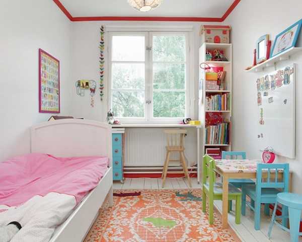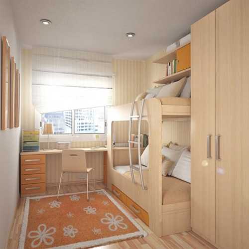 Советуем отказаться от массивной мебели и кресел, больших стенок до потолка и современных горок. Не стоит ими заставлять широкую часть стены, от этого комната станет ещё уже.