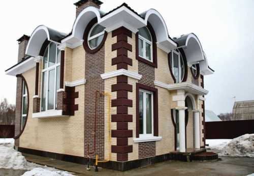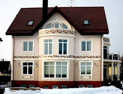 Ознакомьтесь с каталогом архитектурных стилей частных домов прошлого и современности. На фотографии: Дом в постсоветском эклектичном стиле во Всеволожском районе Ленинградской области (2014 г.). Фотография автора.