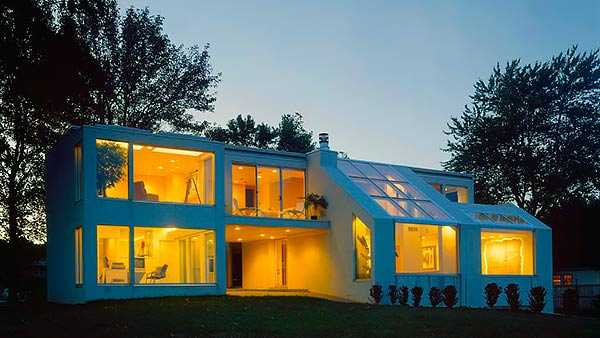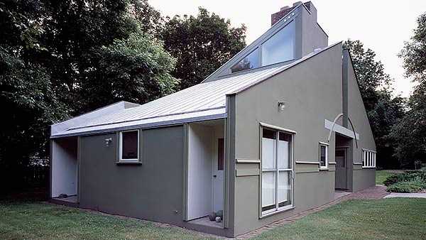 Дома современного архитектурного стиля, как правило, лишены искусственных декоративных элементов. Только функционально необходимые элементы, формы и объемы включаются в конструкцию современного дома. Стилистику современных жилых домов можно характеризовать как минималистическую, где основную роль в создании эстетики здания играют формы, текстуры и пространство, а не какой либо особый декор или нарочитые детали, не относящиеся к общему дизайну конструкции дома. На фотографии:Дом матери архитектора Роберта Вентури Ванны Вентури — однин из первых выдающихся произведений архитектуры постмодернизма, расположен в окрестностях Chestnut Hill в Филадельфии, штат Пенсильвания (1962-64 гг.).Дом входит в десятку наиболее значительных строений, которые повлияли на развите современной архитектуры в США.