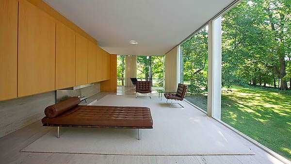 Вместо того, чтобы скрыть основу конструкции дома, современный стиль в архитектуре предлагает зрителю насладиться лаконичной красотой конструктивной основы дома, его истинной неприкрытой структуры. Материалы и конструкции современного дома предстают в натуральном незамаскированном виде. Все силовые элементы конструкции выглядят в современном доме именно так, как они и выглядят на самом деле. Современный стиль обнажает балки, стойки, фактуру поверхностей и структурные элементы. Основная идея дома в современном стиле: «правда, правда и ничего кроме правды» – правды о природе и конструкции дома. На фотографии: Стеклянный дом Джонсона, построенный в 1949 году в городке Нью-Ханаан, штат Коннектикут. Дом был спроектирован и построен архитектром Филиппом Джонсоном в собственной резиденции (при участии архитекутра Ричарда Фостера). Этот архитекутрный шедевр послужил вдохновляющим примером в смелом использовании стекла для многих современных проектов по всему миру.