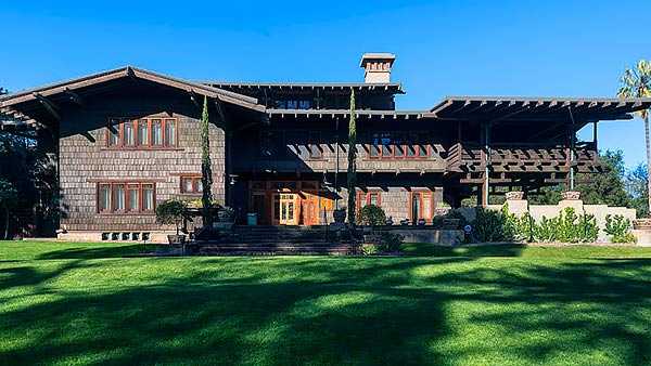 Дизайн современных домов характеризуется использованием материалов в своем натуральном виде, позволяющим наслаждаться оригинальным природным цветом и фактурой каждого из материалов. В современной архитектуре предпочтительны натуральное дерево, камень, бетон, керамика, стекло и металлы (сталь, медь). На фотографии: Дом совладельца компании Проктор и Гэмбл — Дэвида Гэмбла в Пасадене, Калифорния дизайна братьев Чарльз и Генри Грин (1909 г.).