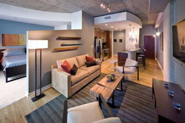 Отличным решением для семейной пары является квартира-студия. Это позволяет эффективно использовать помещение. Устанавливаются перегородки, обладающие способностью раздвигаться, стеллажи и прочее. Хорошо смотрится игра света, она меняет и трансформирует пространство.