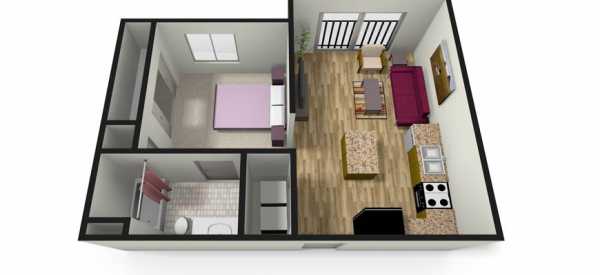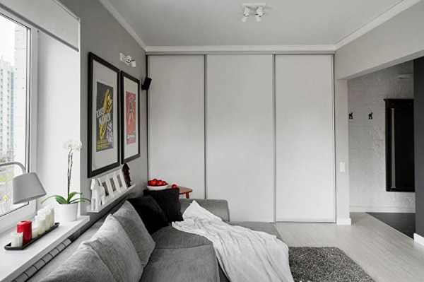 - Если в квартире собирается жить семейная пара или один человек, то логично будет жилой объем разграничить на гостиную и спальню.