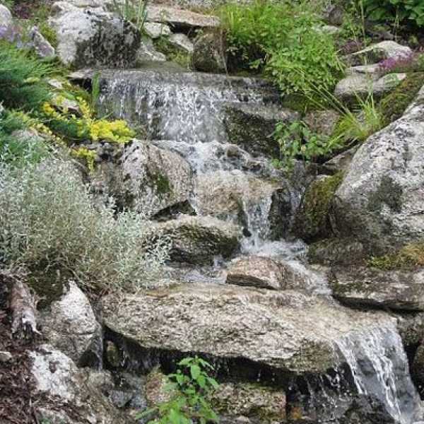 Дренажная система может быть закрытой или открытой. Закрытая сэкономит пространство, а открытая станет элементом декора. Сбегающая по открытым декоративным желобам вода, может на каком-то уступе перейти в маленький водопад или образовывать внизу склона декоративный пруд. Более практичные хозяева могут обустроить на участке сбор воды в специальные емкости, из которых затем проводить автоматический полив.