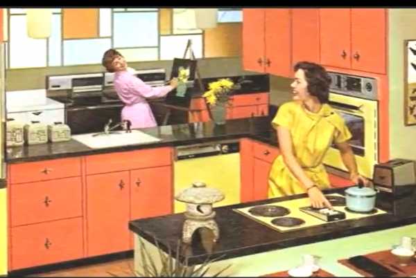 XX век – это эра научно-технического прогресса. Появляется новая техника и первые примитивные кухонные гарнитуры. Но для жителей России на протяжении всего двадцатого века, значения кухни, как особого пространства в доме, менялось только …. идеологически. В это же время в Европе и в Америке с молниеносной скоростью появляются и воплощаются в жизнь идеи принципиально нового обустройства кухни. Австрийский архитектор Маргарете Шютте-Лихоцки спроектировала первый проект функциональной встроенной кухни. Вся необходимая мебель и оборудование были расположены компактно и имели одинаковую высоту. Вместо ножек мебель устанавливалась на специальный цоколь – это было устойчиво и гигиенично. Привычный буфет делился пополам – на нижний шкаф или стол и верхний навесной ящик. Чуть позже на смену отдельно стоящим шкафам и горкам окончательно приходят кухонные модули. И вот тогда мебельные каталоги запестрели обилием различных вариаций. Кухни – от пола до потолка, встроенные раковины, каменные столешницы. Появляются и новые материалы. На смену старому, доброму дереву, покрытому лаком, приходит пластик, нержавеющая сталь и анодированный алюминий. Износостойкие, яркие и футуристичные фактуры стремительно заполняют интерьеры кухонь двадцатого столетия. А появление вытяжек в 80-х годах приводит к полному переосмыслению месту кухни в доме. Отпадает необходимость отгораживать ее от прочих помещений. В моду входит планировка в формате – студия, с пространством, объединяющим кухню, столовую и гостиную. Так постепенно кухня превращается в арт-объект.