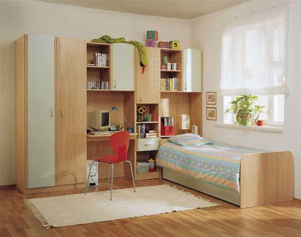 При выборе шкафа для маленькой комнаты предпочтение лучше отдать шкаф-пеналу или угловому. В узкой комнате желательно использовать встроенную мебель.