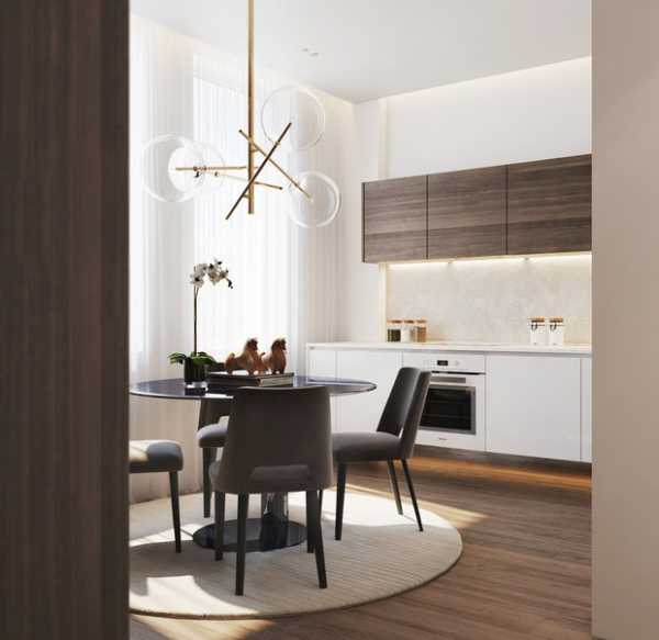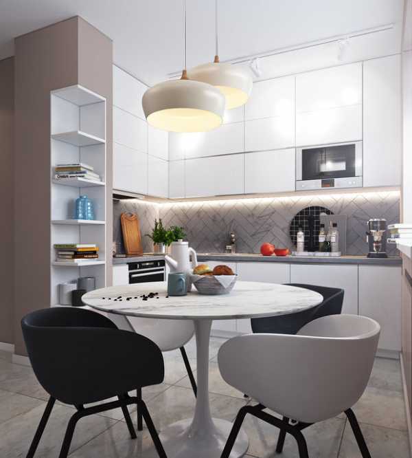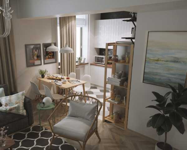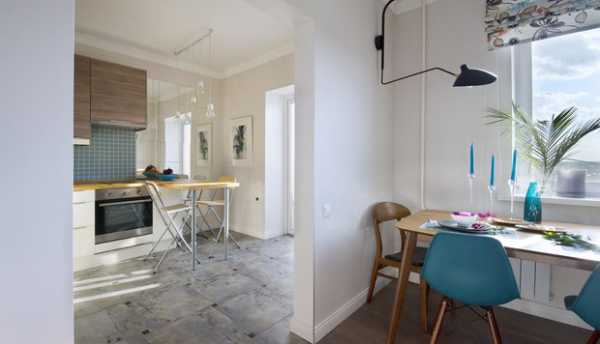 - Возможность увеличить функциональность кухни за счёт переноса стола и стульев в зал.