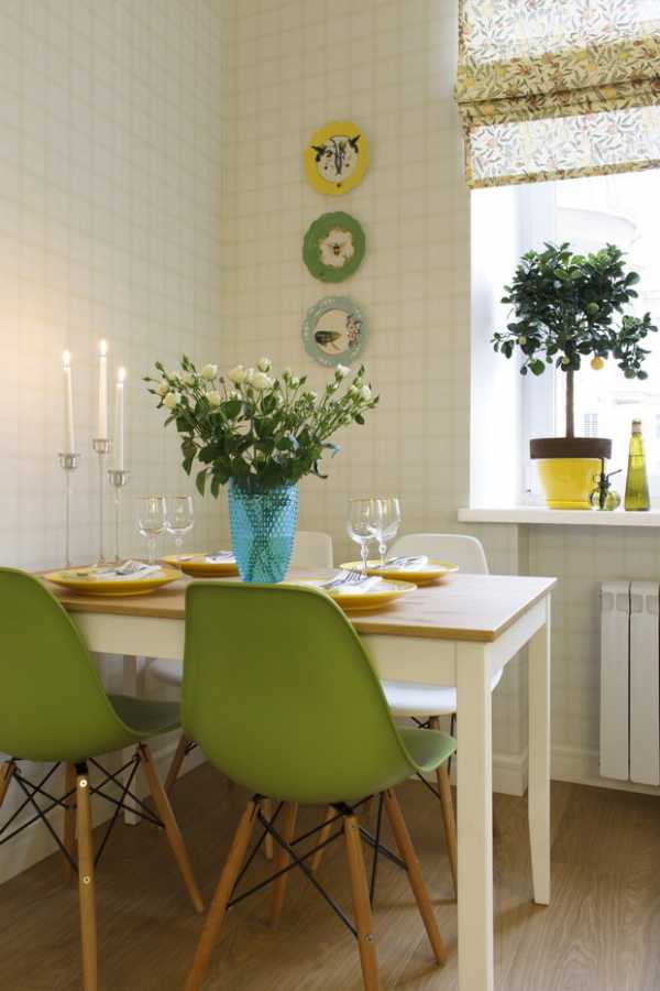 В качестве штор для дизайна маленьких кухонь 4 кв м подходят жалюзи или римские шторы. Подбор предметов светлого окраса, сочетающегося по цвету со стенами, создаст иллюзию большой протяженности стены и отсутствие границ окна. Жалюзи или р1имские шторы позволят максимально использовать дневное естественное освещение.