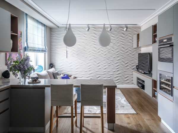 Самое «безболезненное» решение отделить зоны друг от друга. Цветом можно выделить одну зону, например, выбрать яркий оттенок и сделать с ним обеденную группу и диван. Другой вариант — акцентная стена (фартук) или разная отделка стен и пола.