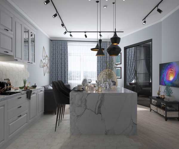 Выбрать систему освещения, в кухне-гостиной необходимо продумать много выключателей и розеток.