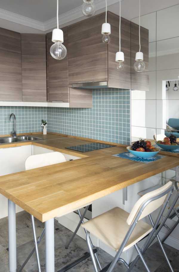 Максимальное применение трансформеров – складных столов, стульев, выдвижных разделочных досок позволит оптимально использовать территорию. При комплектации кухонь бытовой техникой предпочтение следует отдавать встроенному оборудованию и многофункциональным агрегатам. Вид и размеры оборудования можно изменить в сторону уменьшения. Например, использовать 2-х конфорочную варочную панель и мини-холодильник.