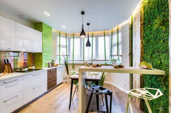 Ещё один вариант совмещения – кухни с балконом. Вариант не самый бюджетный, ведь балкон придётся переделывать под комнату. А это сооружение стен, теплоизоляционные мероприятия, ремонтные работы, строгое зонирование на рабочий и столовый участок. При этом окно и дверь на балкон придётся демонтировать, что связано с большими трудностями. Особенно если демонтируется перегородка между двумя помещениями.