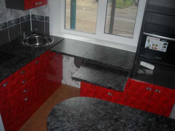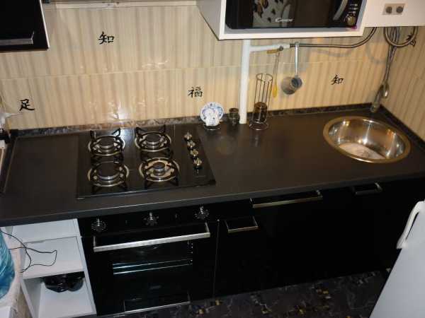 Столешницу для мини кухни лучше выбирать из композитного материала – только так можно будет придать ей желаемые форму и размер. К тому же эти материалы отличаются высокой износостойкостью и не боятся случайных ударов, которые на их долю выпадают чаще.
