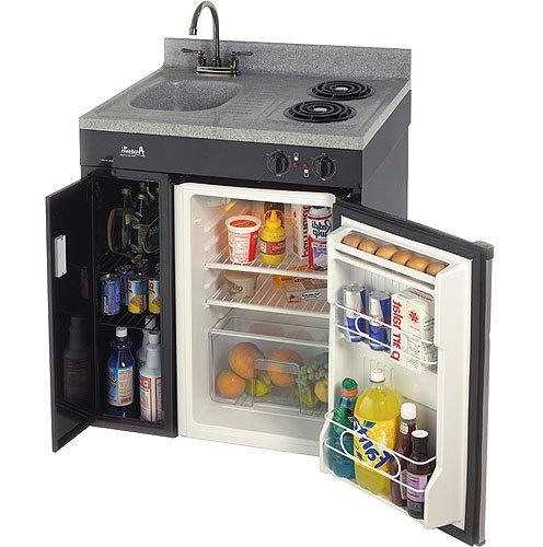 Существуют и так называемые островные мини кухни, представляющие собой средних размеров тумбу, со всех сторон нафаршированную техникой, системами хранения и удобно подключаемыми коммуникациями. Есть даже передвижные модели на колесах, не привязанные к водопроводу и канализации. Изредка подобные системы оборудуются столь же компактными обеденными зонами, например, небольшой выдвижной или откидной столешницей на одного, либо своеобразной барной стойкой.