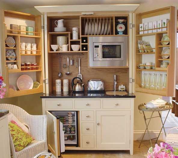 Миниатюрные кухни подразделяются на несколько видов по способу их установки.