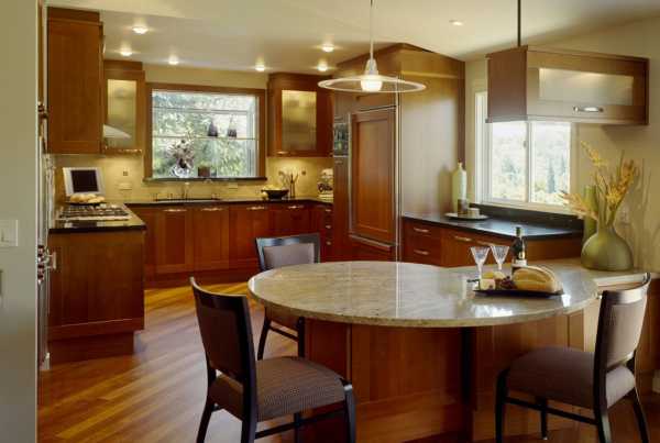 Принимать пищу за барной стойкой так же удобно, как и за обычным столом, а интересный дизайн может сделать этот элемент основным акцентом всего помещения.