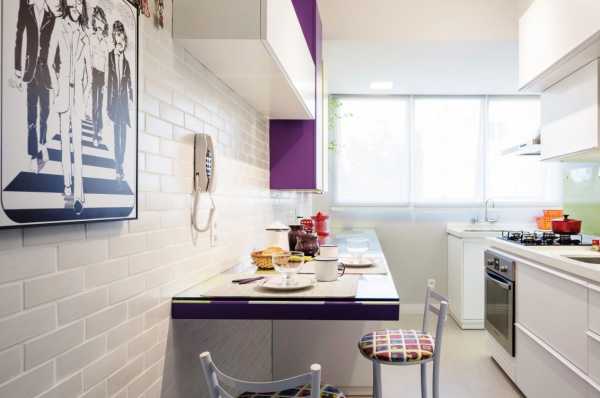 Если в квартире живет молодая семья, которая большую часть времени проводит на работе, то такой вариант будет просто идеальным. Да и смотрится такая кухня достаточно неординарно и очень стильно.