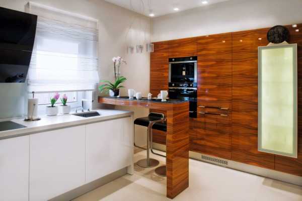 Таким образом, отказ от стандартного стола в пользу барной стойки позволит вам значительно сэкономить свободное пространство и расширить зоны хранения некоторых продуктов и части посуды.