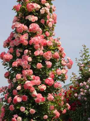 ‘New Dawn’ (плетистая роза) — из-за красивой пышной россыпи цветов особенно любима садоводами. Подросшие цветы закрепляют на опоре таким образом, чтобы каждому бутону поступало достаточное количество света: таким образом обеспечивается обильное цветение. Ветвям плетистой розы дают жить до 3-х лет, т.к. более старые ветки деревенеют и уже с трудом поддаются обрезке. На зиму ветви снимают с опоры, сворачивают и укрывают, а весной снова помещают на опору.