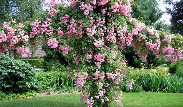 Плетущиеся розовые кусты роз смогут красиво оформить любой участок сада и добавят ему нежности