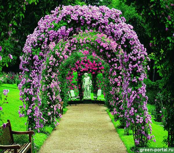 Арки и обелиски, увитые розами, особенно красивы, их можно ставить «просто так», в качестве акцента.