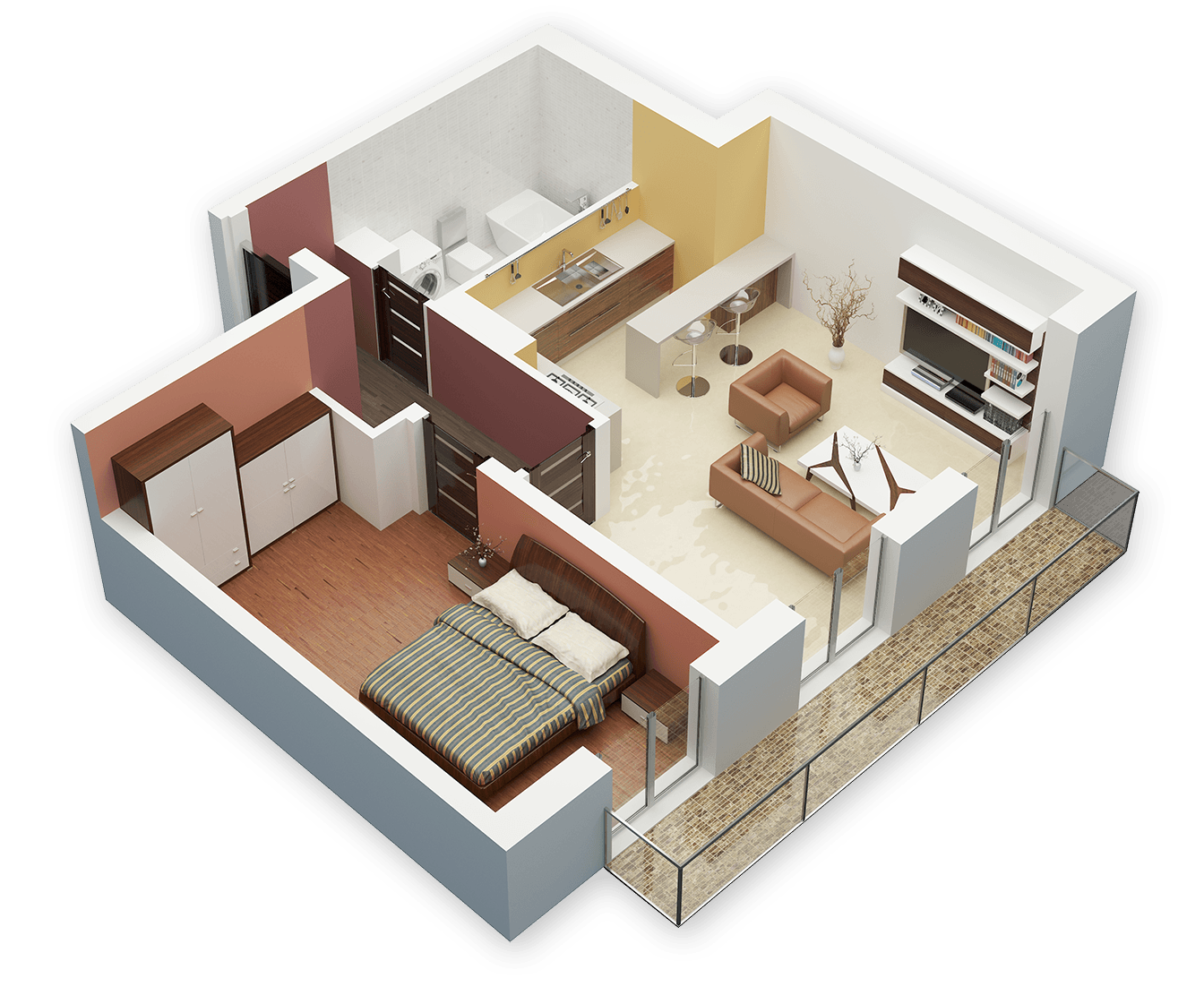 - Современные 3D планы квартир украсят вашу брошюру или каталог. Люди будут тратить больше времени, изучая вашу брошюру, чем исследовать стандартные 2D планировки ваших конкурентов.