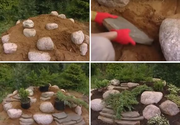 Итак, теперь мы знаем, как оборудовать альпийскую горку на нашем участке.
